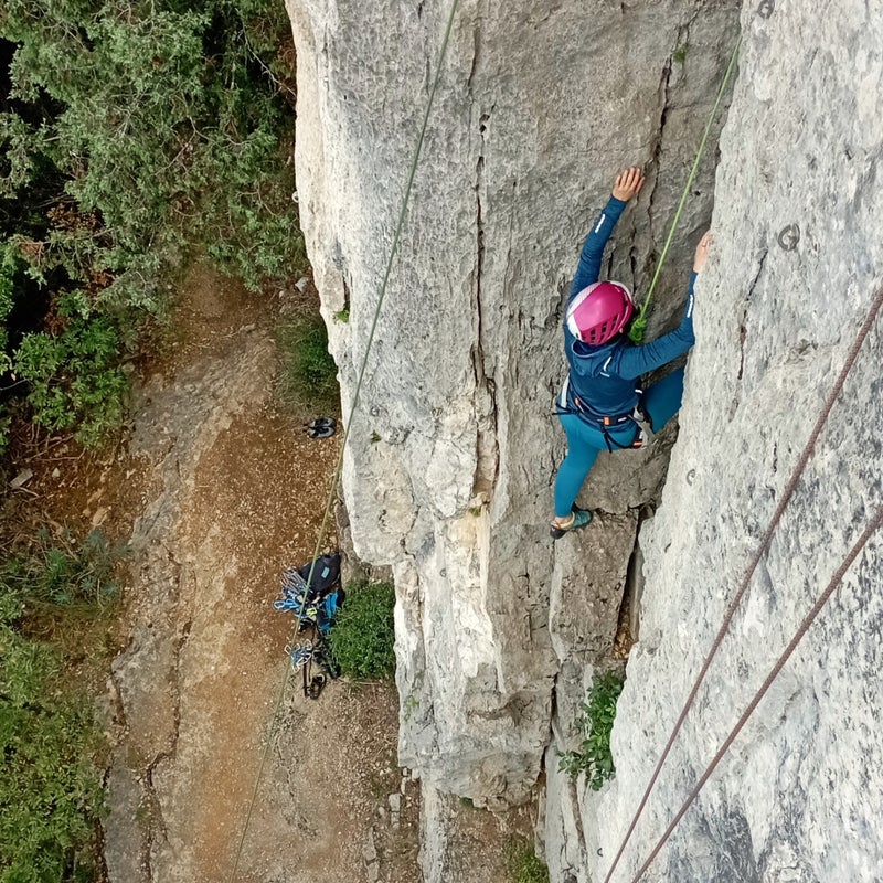 Un groupe de jeunes, encadré par Maud, a pu goûter aux premières émotions verticales après avoir appris les grands principes de l'encordement et de l'assurage.